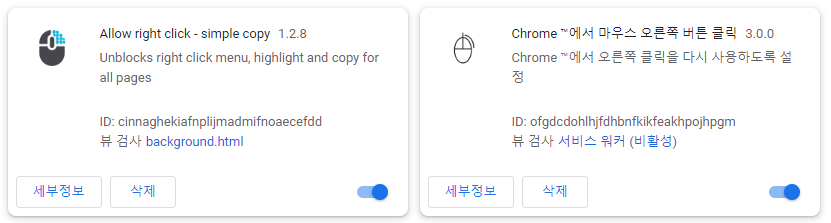 요거 두개가 크롬확장에서 없어용