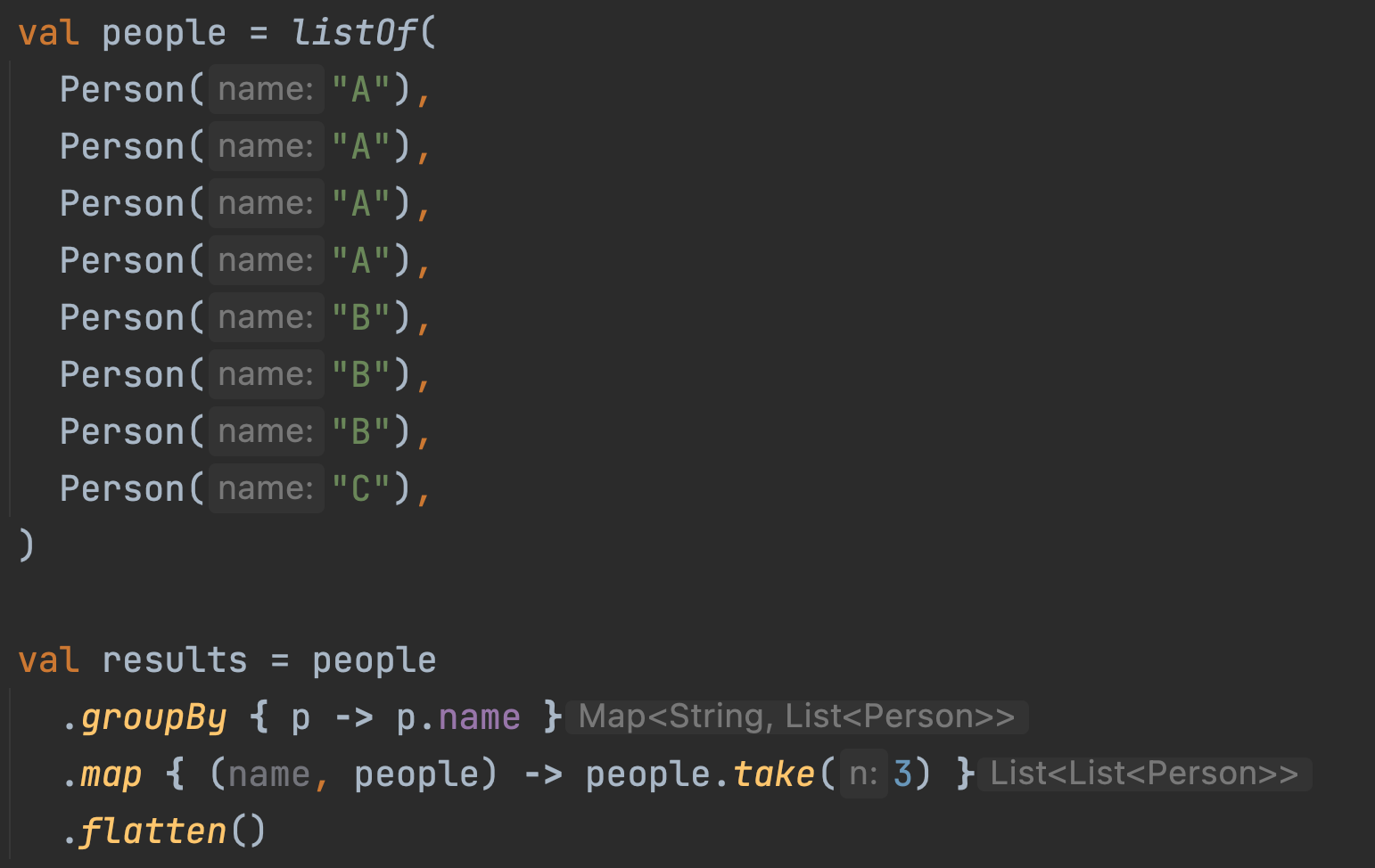 다음과 같이 groupBy + map + take + flatten을 조합할 수도 있습니다 ㅎㅎㅎㅎ
