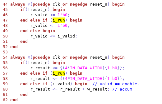 말씀해주신 것처럼, i_run 신호 자체가 reset 과 동일한 역할을 하고 있어요.