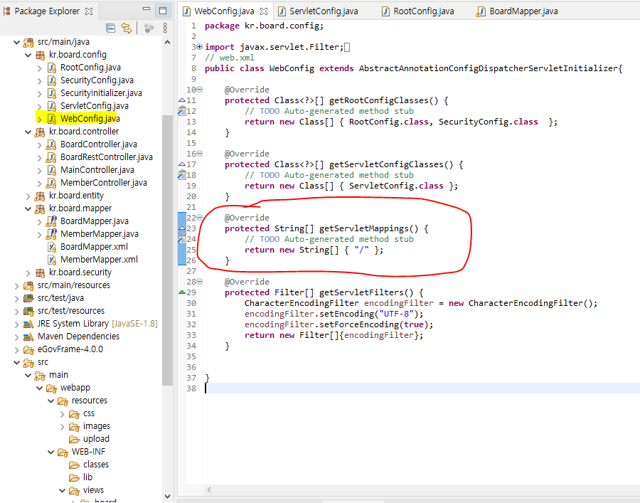 질문1. WebConfig.java에서 getServletMappings 메서드의 역할이 궁금합니다.