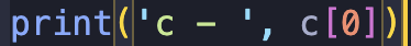 c 가 이렇게 선언 되어있어서, 0번째를 출력하고자 해서