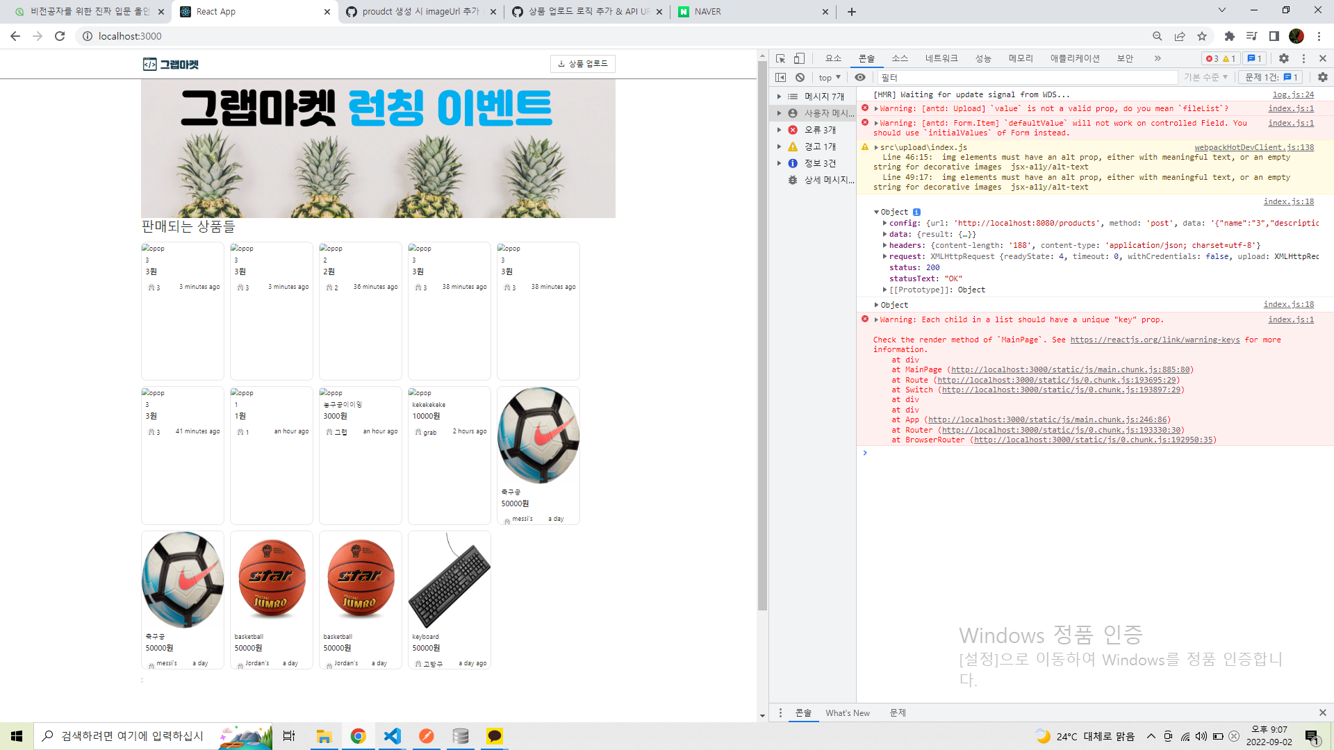 상품 업로드 창에서 정보들 입력하고