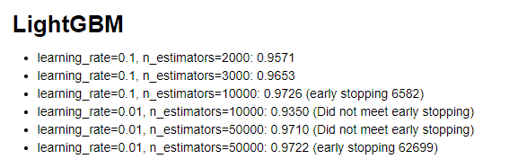(끝에서 2번째는 n_estimators=20000일 때인데 오타가 났습니다)