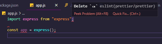 근데 제가 extends: ['airbnb-base', 'plugin:prettier/recommended']를 사용하고 있는데 vscode에서 eslint extension 을 설치하고 저장을 하면 코드 마지막 라인에 ; 가 생기면서 prettier/prettier 오류가 발생합니다(스크린샷첨부).