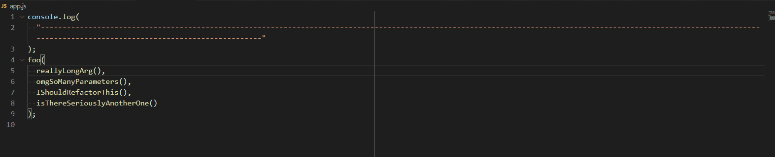 prettier사용결과 console안의 내용이 80자 단위로 잘리지 않았는데 이렇게 나오는게 맞는건가요?