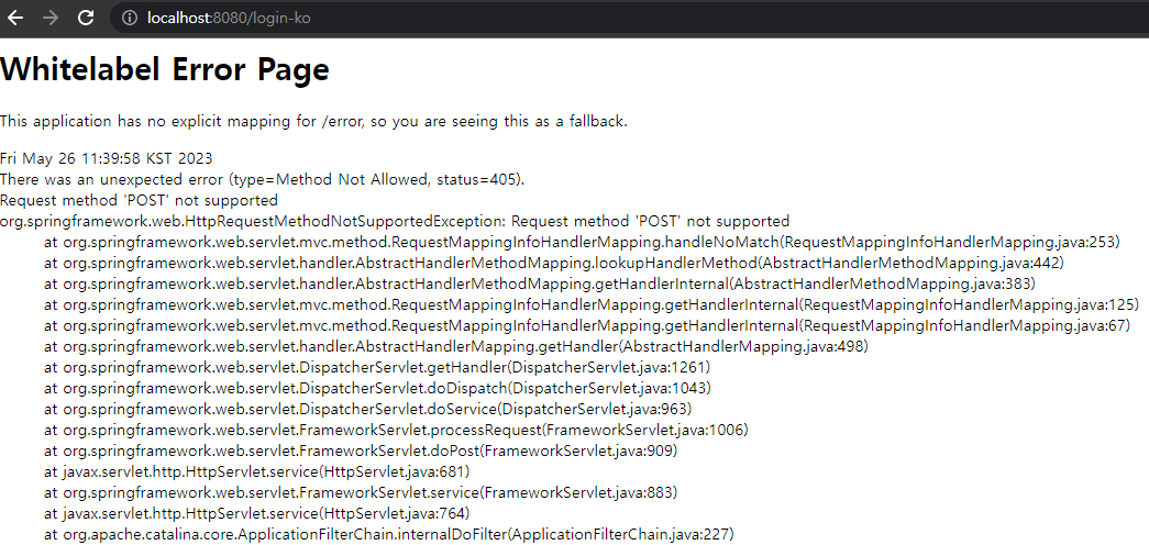 기본 /login 페이지로 가는 부분에서도 에러가 발생합니다.ㅠ