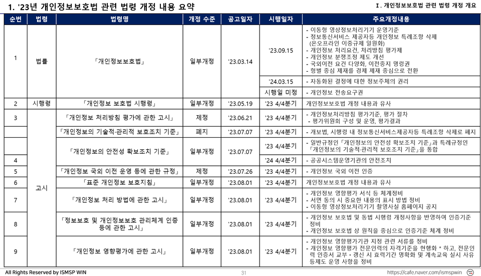 ✅ '23 Personal Information Protection Act, Enforcement Decree, Notification, etc., revisions and amendments, One View in the big picture