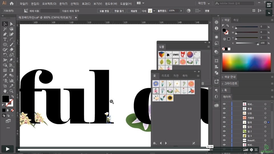 I had fun learning it well. ㅎㅎ But while listening to the lecture, I felt that I needed to take the lecture with some basic knowledge of Illustrator and Photoshop! And since it was different from the English version, I had a hard time finding it. ㅜ