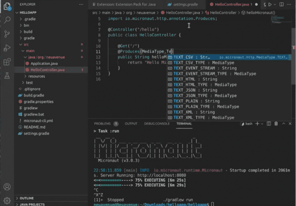3) Creating a Micronaut Web Application with the Gradle Build Tool - Hello Mini Project (Back-End)