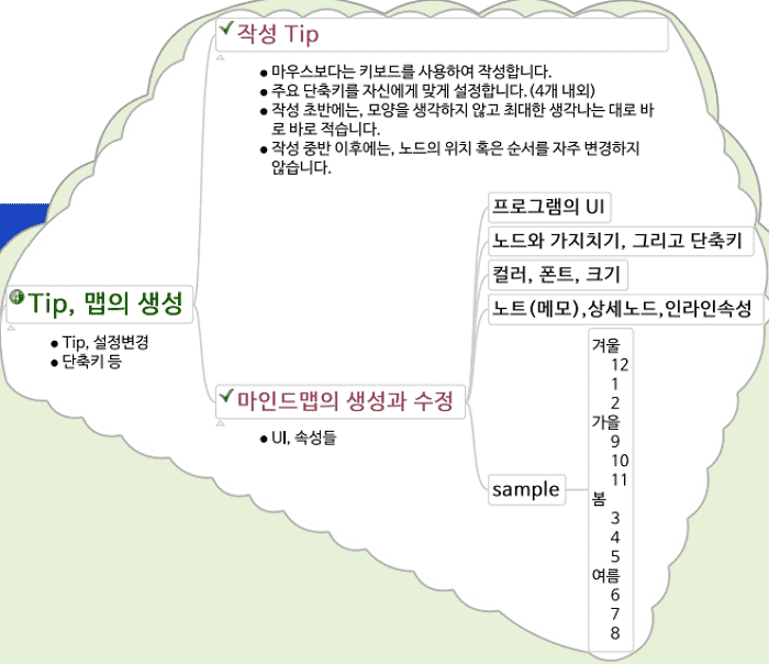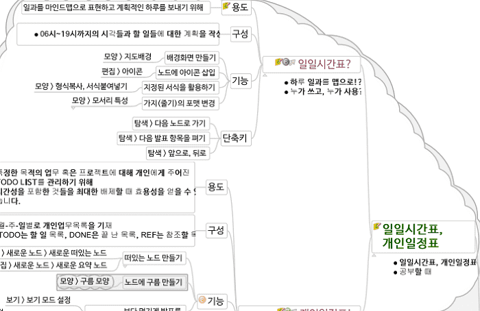 A. According to Wikipedia, "Mind map, a theory advocated by former British journalist Tony Buzan and popularized in Europe, is a method to organize what you have learned or manage yourself as if drawing a map. Mind maps have a hierarchical structure and show the relationships between pieces of the whole. (Source: Wikipedia, Mind Map) ", to put it simply, it is 'a technique for organizing thoughts by visualizing them.' There are many different types of maps, but to put it in my own words, <You'll know just by looking at them>. In other words, you don't have to know.