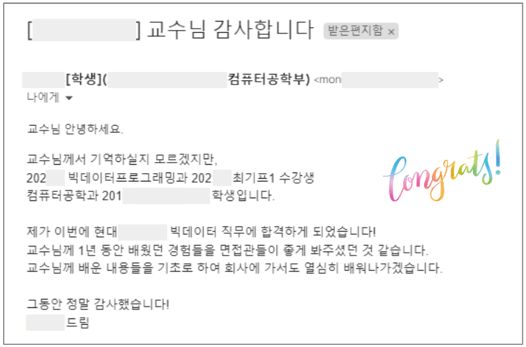 개발자로 근무하면서 빅데이터에 대한 막연한 궁금증으로 수강하게 되었습니다. 수강하면서 단순히 이론 설명이 아니라 전반적인 배경을 같이 강의해주셔서 보다 쉽게 이해할 수 있었습니다. 중간중간 실습도 자세하게 리드해주셔서 너무 좋았고요!! 아직 빅데이터가 무엇인지 모르고, 개발자로써 막연한 궁금증으로 시작한다면 지금 강의가 매우 유익할 거라고 생각됩니다!