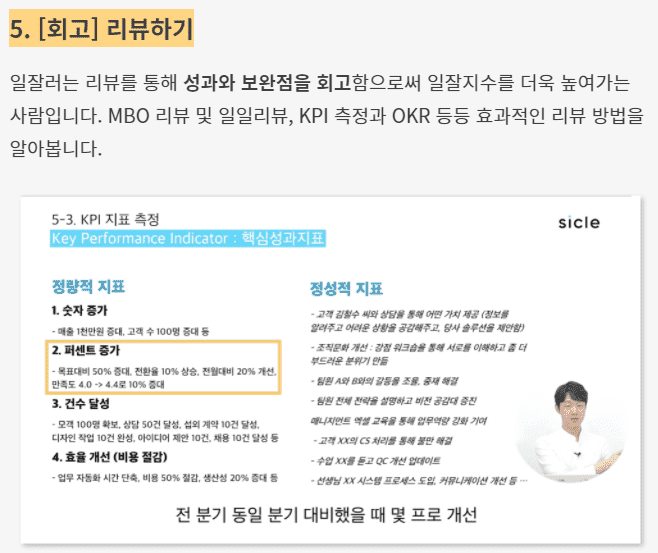 지금도 sicle을 창업하여 팀원들과 함께 매월 개별 면담코칭을 하며 일 잘하고 생산성 높은 매니지먼트 체계를 구축하고 성장하는 조직문화를 만들고 있다.