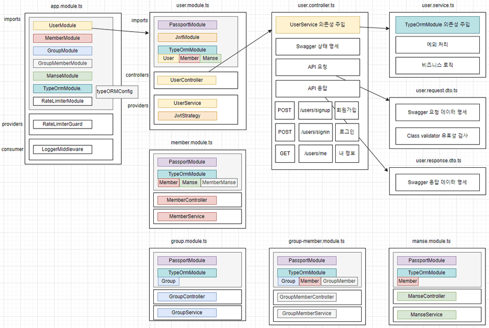1. You can understand NestJS through a single diagram. Even if the service scales, it doesn't deviate significantly from the structure below.
