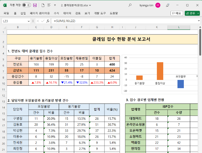 코로나 이후에 이거저거 어설프게 엑셀 강의듣고 있었습니다. 그 중에서 강사님 강의가 단연 최고라고 말씀드릴 수 있겠네요. 귀에 강의가 쏙쏙 들어오고 이해도 잘 됩니다. 감사합니다.