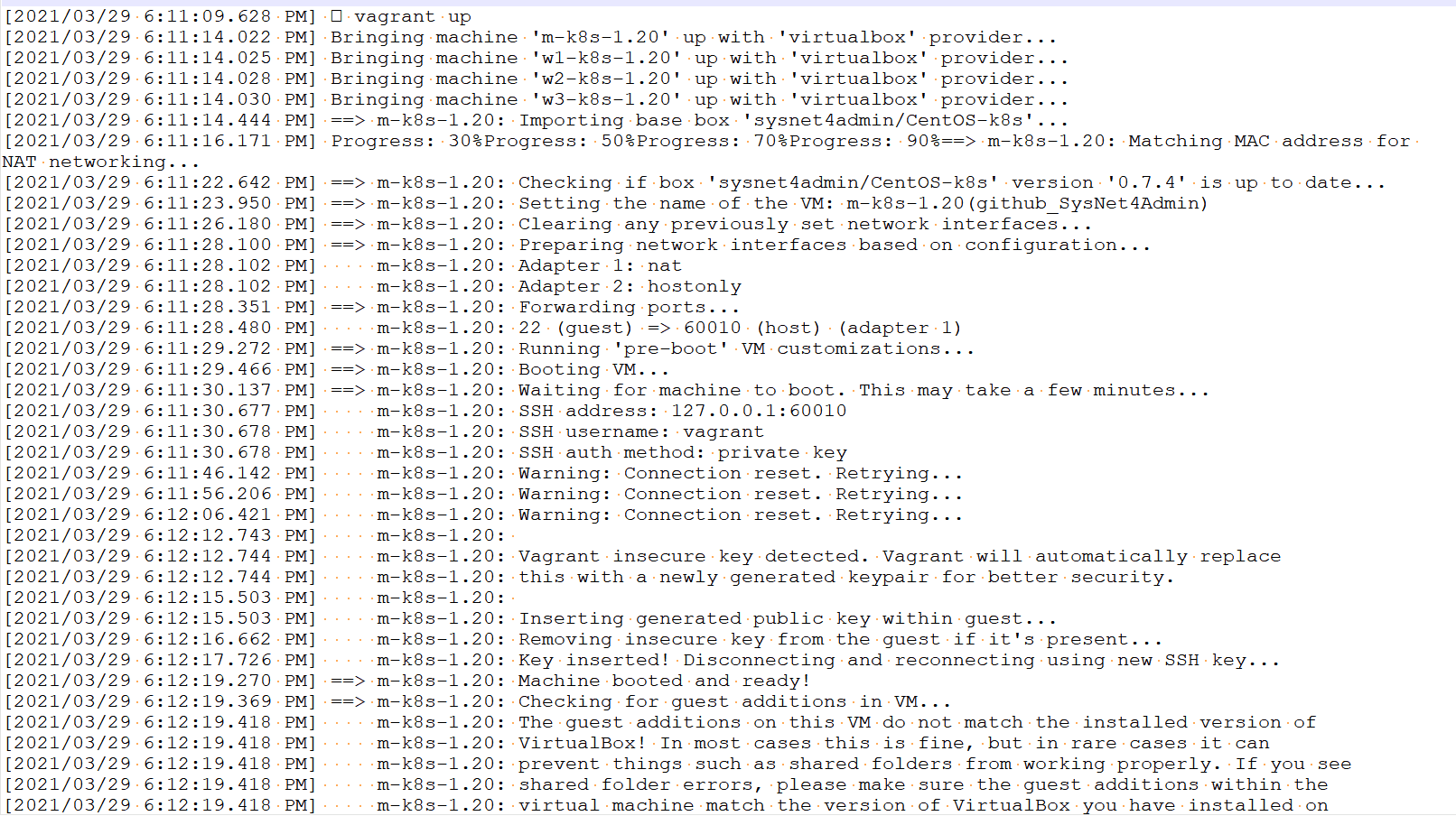 I have attached the results of the 'vagrant up' command as practice material so that you can compare whether it is installed properly.