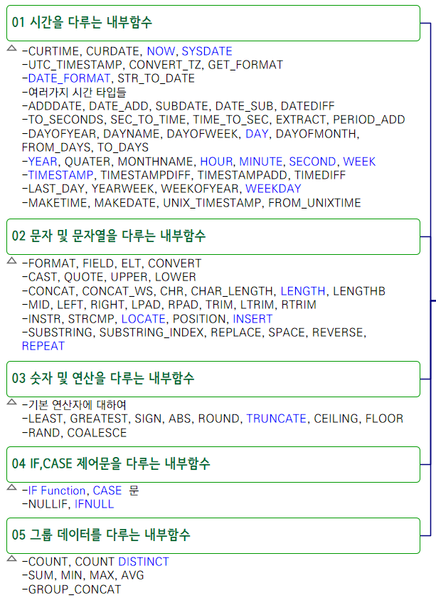 One way to use SQL statements more efficiently when processing data with MariaDB is to leverage its built-in functions. Leveraging existing functions offers advantages in terms of accuracy and efficiency, rather than developing procedures or functions on an as-needed basis. Most of the functionality developers and analysts need is already implemented as built-in functions. Therefore, if you're familiar with the types and usage of MariaDB's built-in functions, you'll be able to achieve the desired results more accurately and in less time.