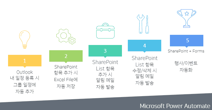 Outlookの予定表とグループの予定表を自動的にコピーし、SharePoint List項目を自動的にExcelファイルに保存し、SharePoint List項目を追加/変更/削除するときに必要な情報でメールを受信し、イベント/イベントを登録から参加ガイドまですべて自動化してみたいです!