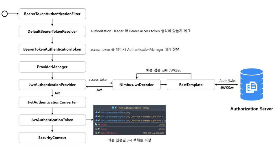 5. Lastly, I think it would have been better to explain Filter -> Manager -> Provider -> before the actual lecture started. They mentioned it in the latter half of the lecture. I realized that the pattern was set while listening to the lecture, but it would have been easier if I had known the pattern at the beginning. It may be less so in other lectures, but Security has so many classes and the depth is so deep that it is a bit confusing to follow the lecture, and I get lost even while following the lecture. Of course, the instructor explains the flow with class diagrams at the beginning, but when the screen is filled with classes with long names that I have never seen before... the flow is not immediately apparent. Of course it helps, but I still don't think I'm on the same page as the students.