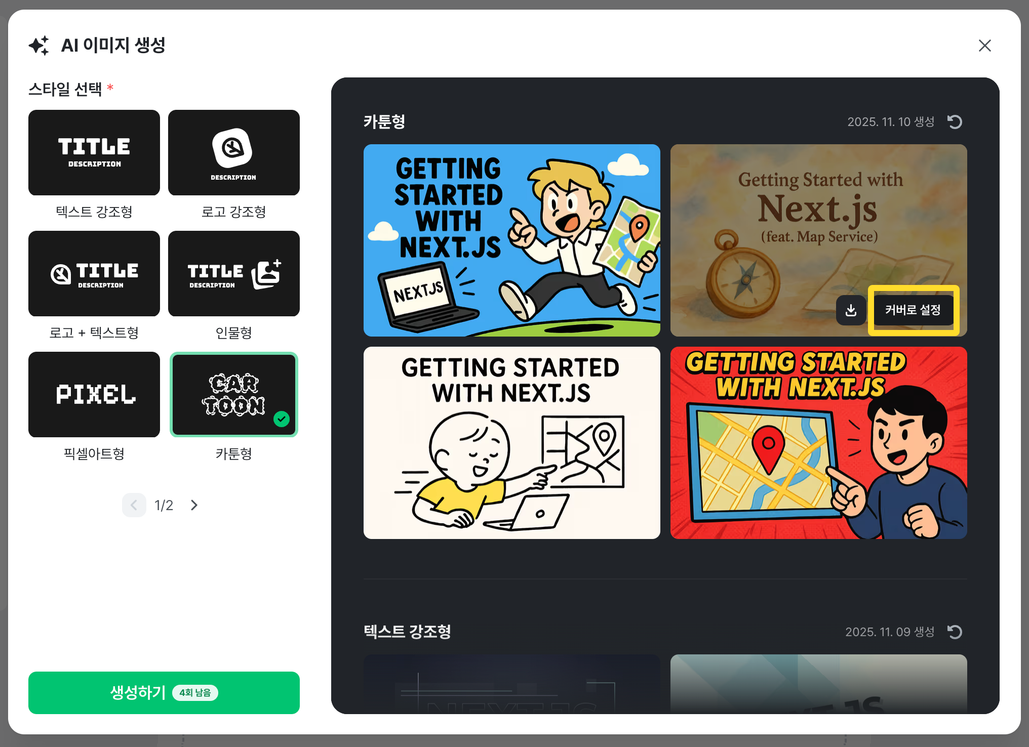 AI 커버 이미지 기능으로 빠르게 이미지를 제작해보세요!