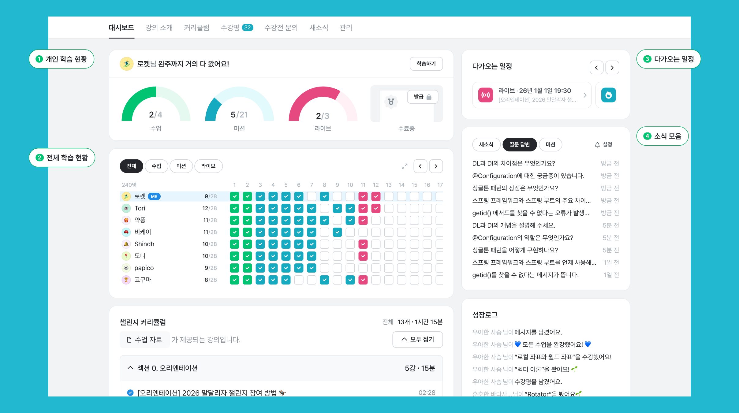 이를 통해 수강생들이 건강한 자극을 받고, 더 높은 완주율을 기대하고 있습니다.