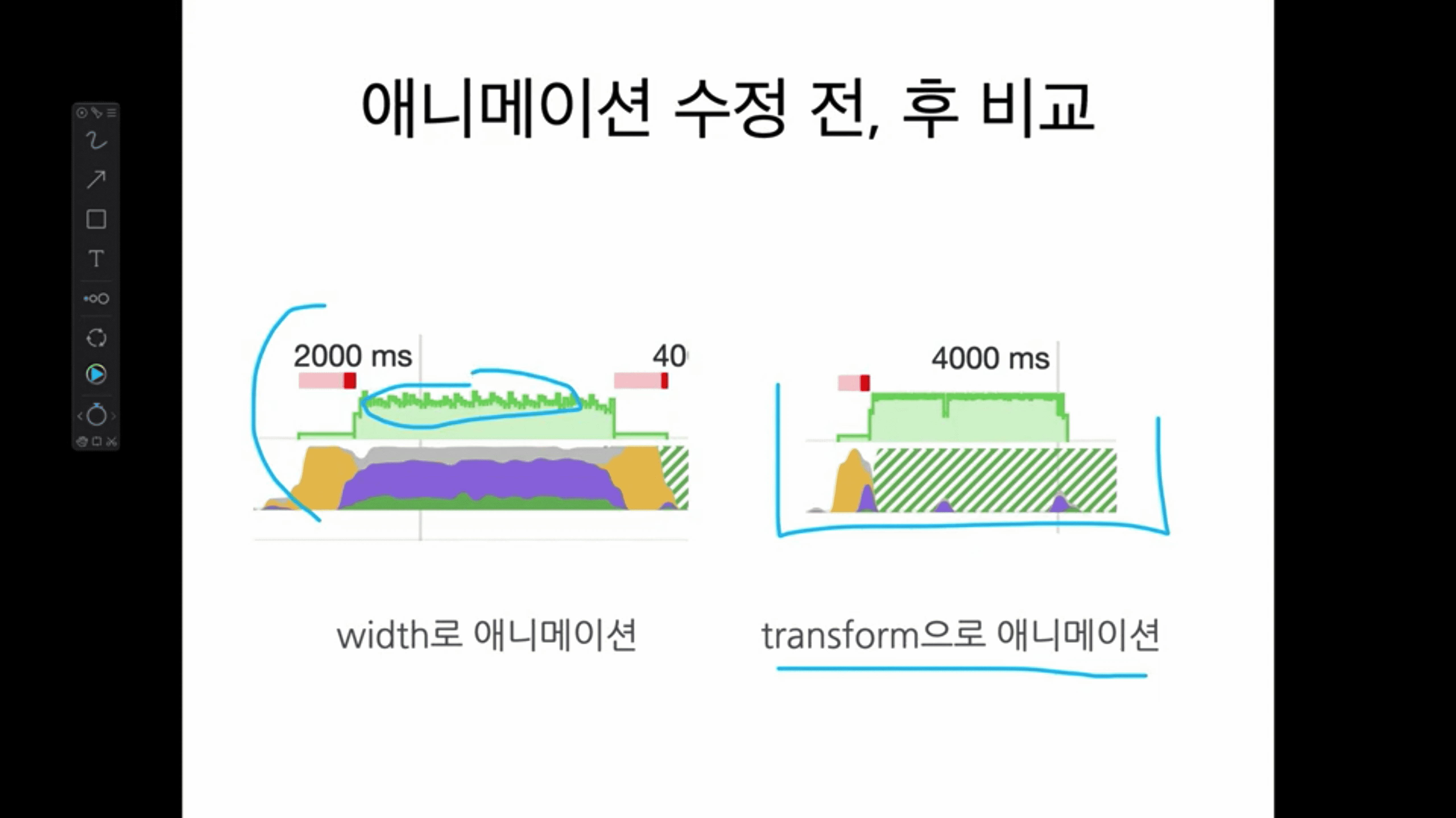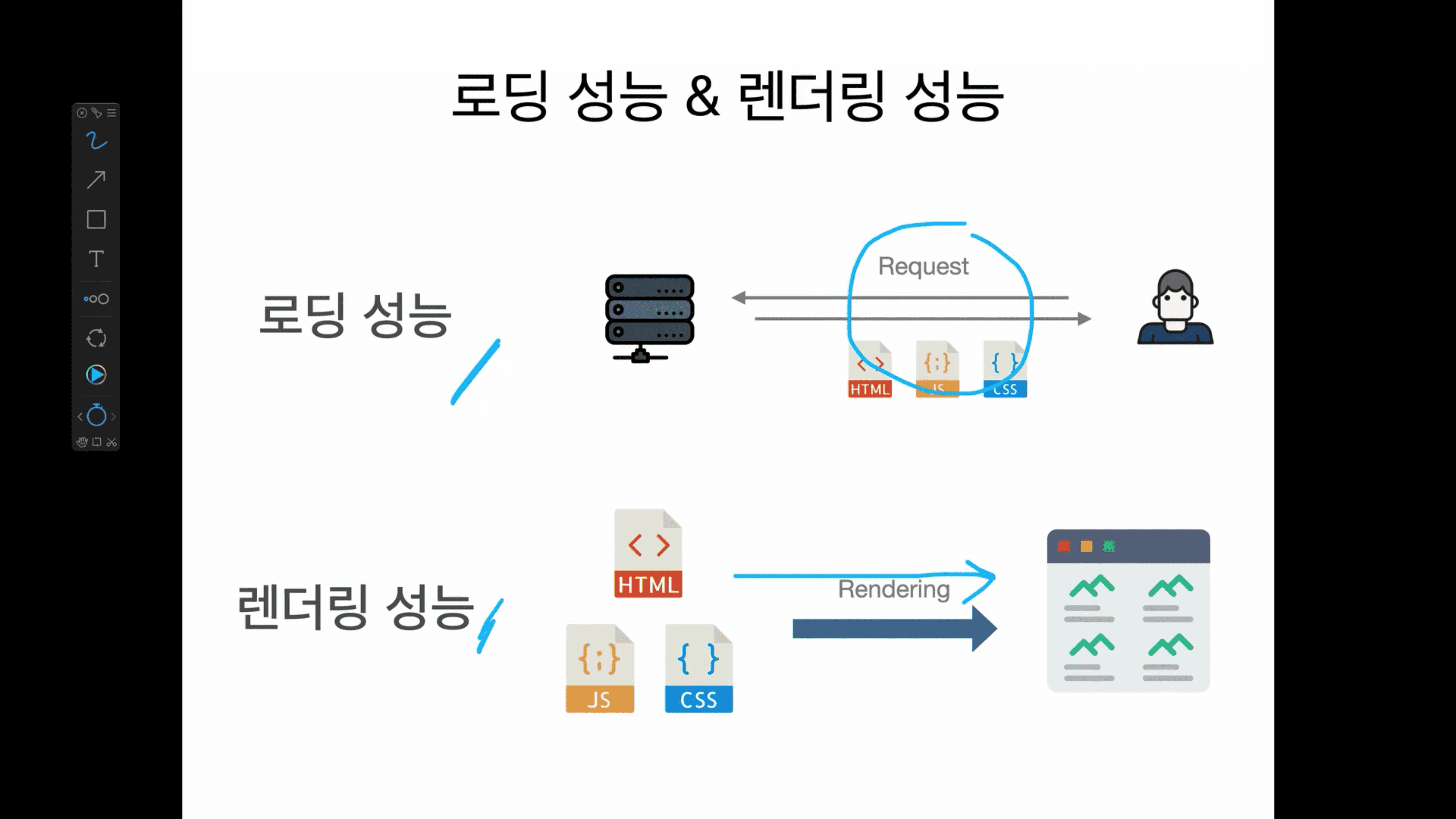 사실 성능 최적화라는 것은 상황에 따라 달라질 수 있고, 방법도 다양하지만, 그 중 핵심적인 것들을 모아 놨고, 단순히 최적화 기법만이 아닌 브라우저의 동작 원리와 성능의 분석 방법 등 웹 프론트엔드 개발에 뼈가 되고 살이 되는 것들도 알려주니 열심히 학습해주세요. 질문은 언제나 환영입니다.