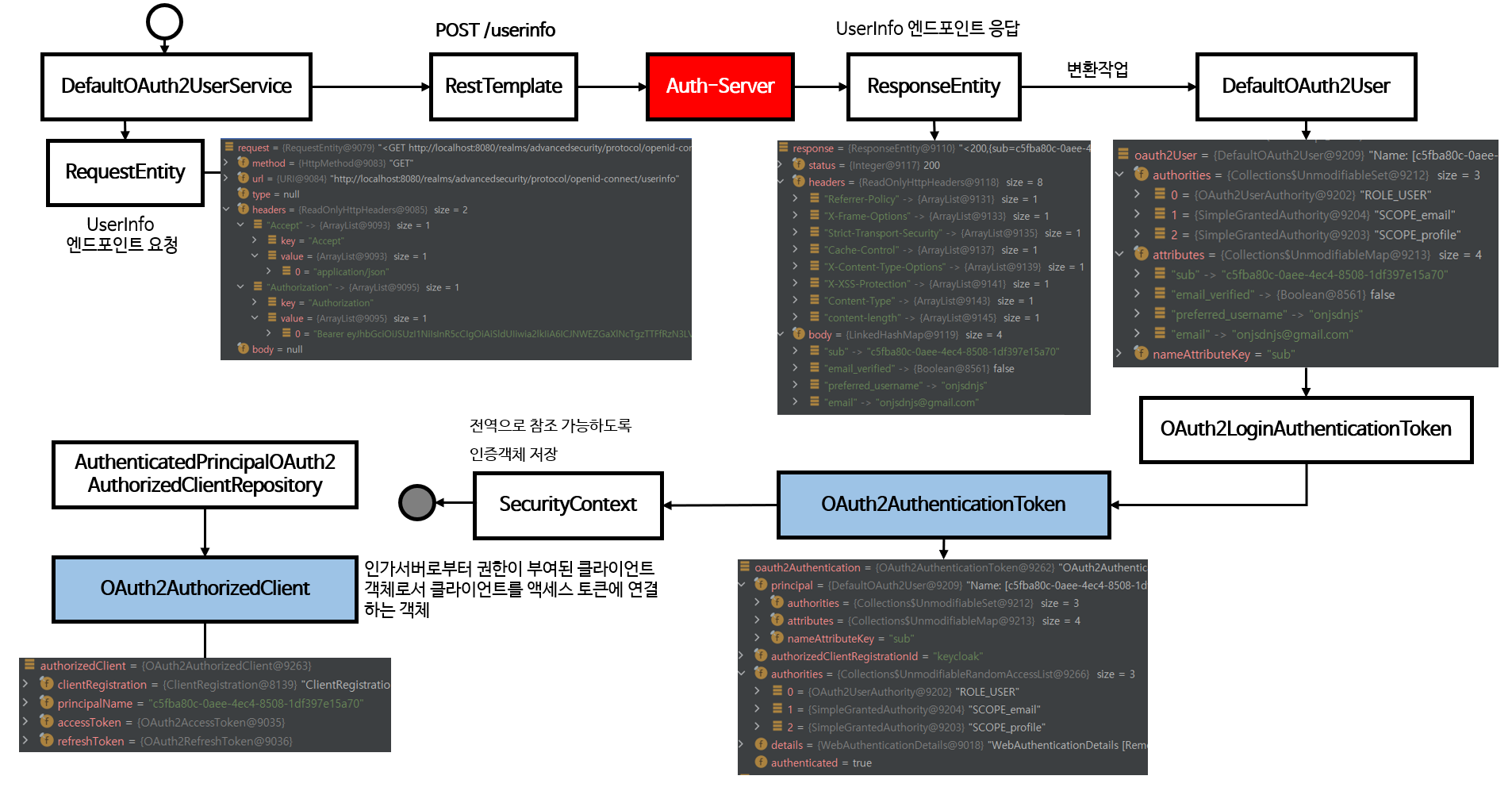 최근 Security, OAuth2에 대해 실무에서 적용시키려는 부분이 보여서 동작 과정들을 정리하고 관심을 갖고 공부중이었는데요, 나름대로 자세하게 정리하면서 공부하긴 했지만, 조금 더 자세하게 모르는 부분들도 알 수 있게 되어서 알찬 강의가 되네요.