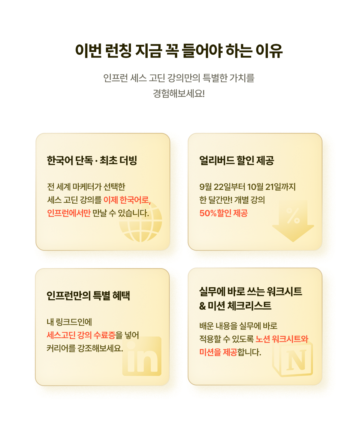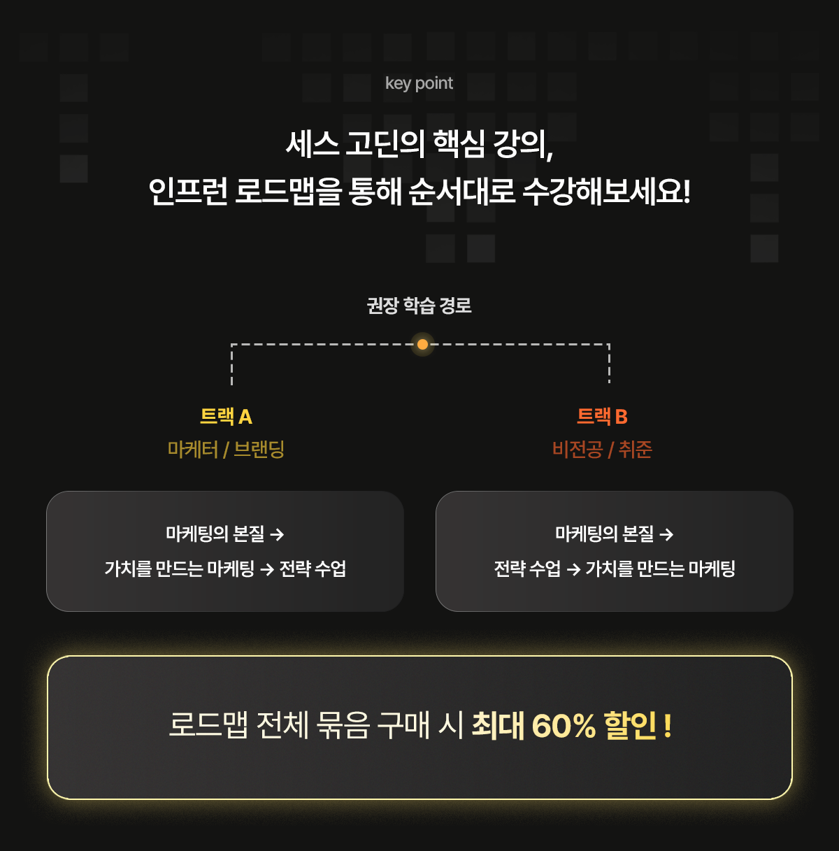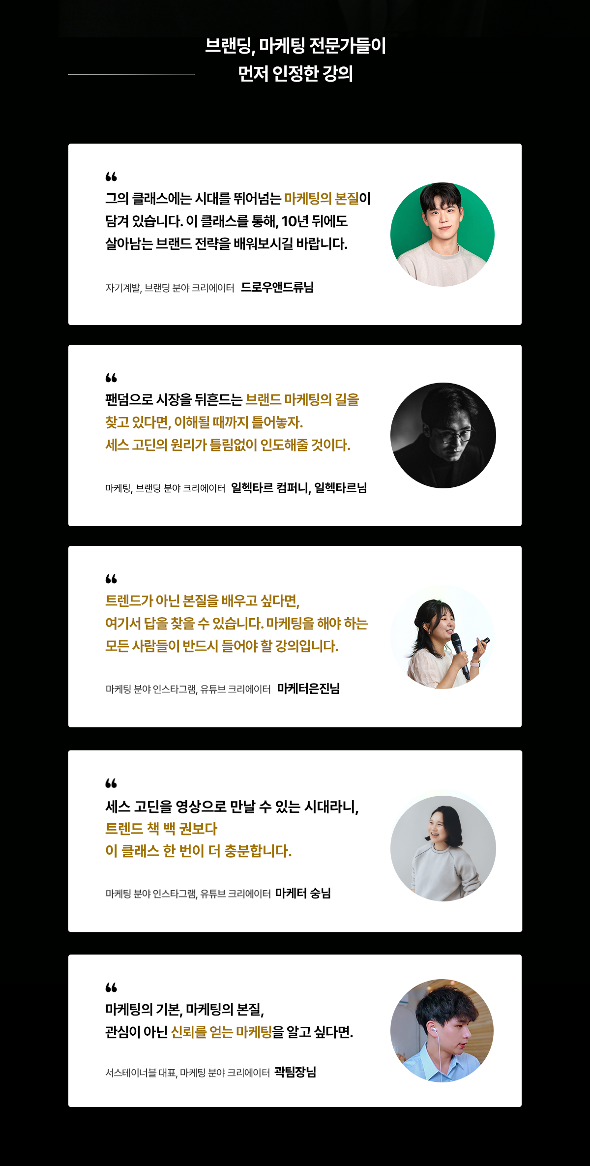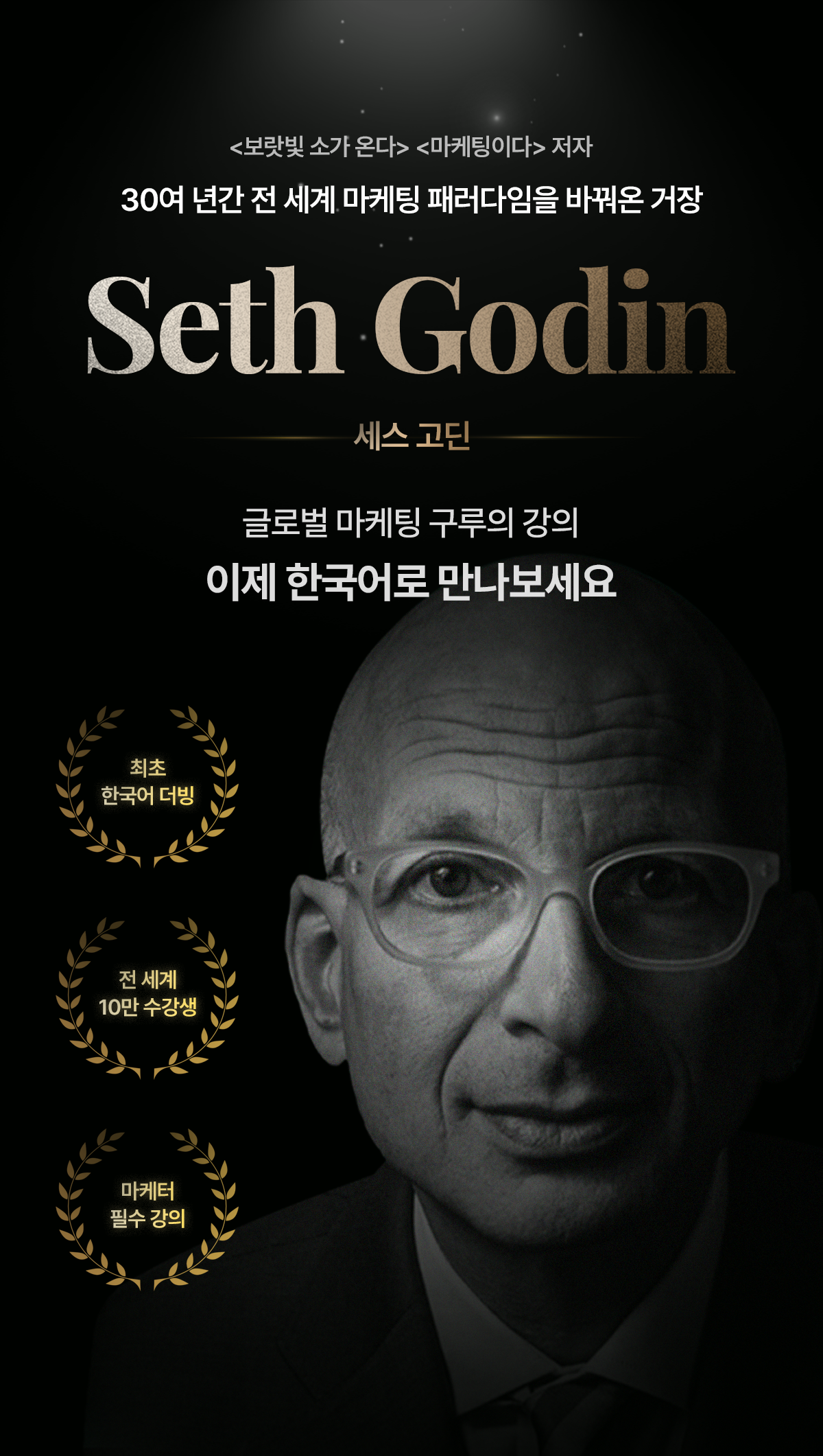 레벨 입문 Seth Godin 세스 고딘의 마스터클래스: 마케팅의 본질 가격 218,900원 별점 5.0 ( 리뷰 12 ) studentCount +100명 exclusive 독점 adminStudentCount 124명
