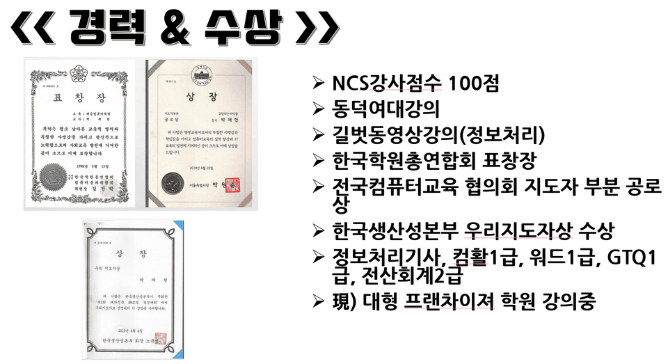 한국학원총연합회 표창장 수상국제 컴퓨터학원 강사