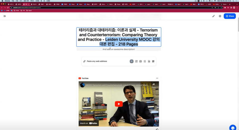 Khóa học này, do Giáo sư Kim Hyung-ryul giảng dạy, khám phá 615 khóa học MOOC từ 150 trường đại học danh tiếng tại 30 quốc gia, được phân loại thành 15 chuyên ngành, dựa trên kinh nghiệm cá nhân và nội dung chính được biên soạn bằng Wakelet. Khóa học này cung cấp cái nhìn trực quan về sự đa dạng của các khóa học MOOC do các trường đại học danh tiếng trên toàn thế giới cung cấp. Khóa học này lý tưởng cho sinh viên đại học Hàn Quốc, đặc biệt là học sinh trung học phổ thông chưa chắc chắn về chuyên ngành của mình, muốn tìm hiểu trước về các chuyên ngành khác nhau.