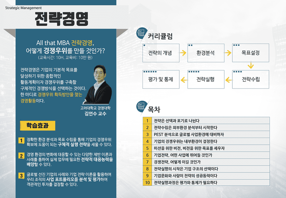 Hiểu quá trình thiết lập và thực hiện chiến lược để đạt được kết quả và tìm hiểu cách thiết lập chiến lược hiệu quả tập trung vào thế mạnh của công ty thông qua việc lựa chọn. Đề xuất cho những người cần tư duy chiến lược và ra quyết định dựa trên lý thuyết chiến lược quản lý.