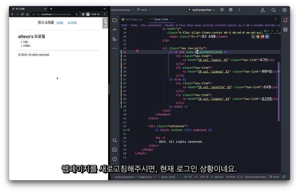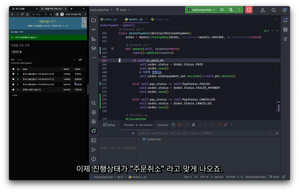 Tôi là nhà phát triển mới bắt đầu phát triển dịch vụ web với django. Cuối cùng tôi đã liên kết iMport (Port One) với dịch vụ nhưng không có tài liệu nào cho Django nên tôi nản quá nên trả tiền và tham gia khóa học với cảm giác như đang nắm lấy sợi dây cuối cùng. Tôi cố gắng chỉ nghe những phần tôi cần, nhưng khi nghe bài giảng, tôi phát hiện ra rằng có rất nhiều nội dung hữu ích cho việc viết mã của tôi (liên quan đến trung tâm mua sắm). 1. Tiến độ nhanh - Nó không rườm rà và anh ấy là người đánh máy nhanh nên không mất thời gian chờ đợi và anh ấy hiểu rất rõ những điểm chính. Âm thanh tốt và phụ đề tuyệt vời. Thật tốt khi chỉnh sửa tất cả các phần đang chờ đợi! 2. Cách viết code tốt - Đối với một lập trình viên mới bắt đầu như tôi, việc đọc code của chuyên gia rất hữu ích. Tuy nhiên, khi đọc, có nhiều lúc tôi không hiểu tại sao nó lại được viết với mục đích này, nhưng thật vui khi có thể hiểu hết ý đồ khi tôi làm theo từng cái một. 3. Mã có thể sử dụng trong thực tế - Đây không phải là một đoạn mã dễ dàng có thể nhìn thấy ở bất cứ đâu và nó có rất nhiều nội dung thiết thực có tính đến vấn đề bảo mật nên tôi nghĩ mình có thể sao chép nó nên tôi rất thích nó. Họ đang sắp xếp một cuộc họp về Python ở Daejeon, nơi tôi sống, vì vậy tôi muốn đến thăm họ một lần và bày tỏ lòng biết ơn của mình. Mặc dù quá trình phát triển đã hoàn tất nhưng tôi muốn thay đổi mã của mình để chuyên nghiệp hơn một chút, vì vậy tôi cũng vậy. dự định tham gia các bài giảng django thường xuyên(?). Tôi đánh giá cao nó. Bạn có thể học chỉ bằng cách nhìn vào mã.
