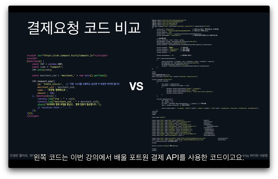 • Mã bên trái: Mã sử dụng API thanh toán PortOne