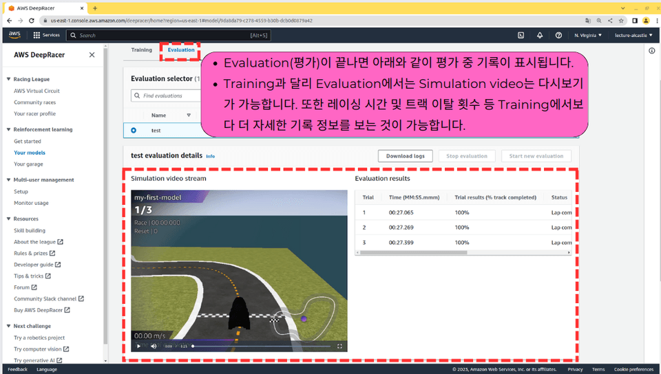 AI Castle được xếp hạng số 1 trong bảng xếp hạng chính thức của DeepRacer Hàn Quốc năm 2023!