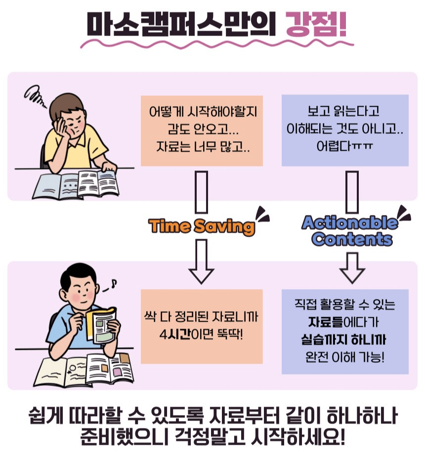 마소캠퍼스의 Actionable and Time-Saving Curriculum으로 성장의 길을 함께 걸어나가길 기원합니다.