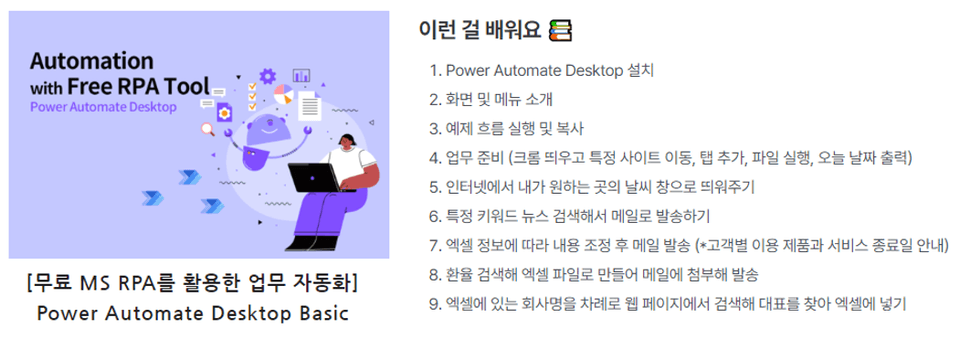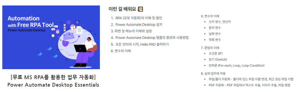 Power Automate Desktop là Đây là công cụ RPA của Microsoft. Việc giới thiệu các biến và học ngữ pháp ngay từ đầu có vẻ hơi khó khăn, nhưng khóa học cơ bản đã giới thiệu về cài đặt, menu và màn hình. Bằng cách theo dõi và tự động hóa các tác vụ, tôi đã có thể vượt qua những định kiến ban đầu về độ khó và giảm bớt sự kháng cự.